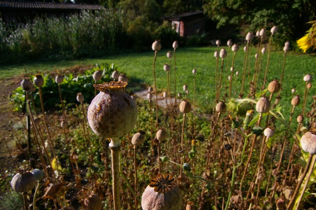 Jařiny se obvykle sejí na jaře a sklízí se během léta. My máme tolik drzosti, že je hned po sklizni zasejeme ještě jednou. Když nám počasí přeje, máme znovu krásné jařiny i na podzim. Letos nám těsně před prvními mrazíky vykvetl mák setý.